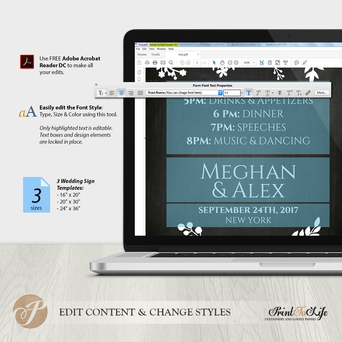 Purchase this listing for 3 “INSTANT DOWNLOAD” PDF Templates, which includes high resolution “Wedding Schedule Sign” for printing at your local copy shop. Display your sign in a frame or mounted it on foam. The files are available instantly after your payment is complete.